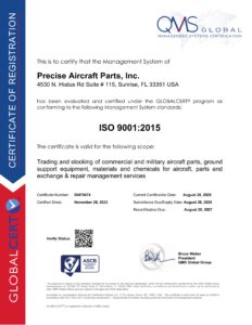 Precise Aircraft Parts goes through periodical internal and annual external audits in strict accordance to maintain its ISO 9001 accreditation.